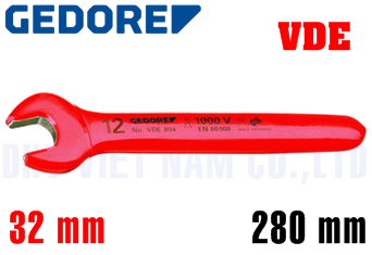- Cờ lê cách điện Gedore VDE 894 32, Gedore Spanners VDE 894 32 là loại cờ lê một đầu miệng hở dùng để siết bulong, đai ốc size: 32 mm, chuyên dùng để siết trong môi trường điện cao thế ( < 1.000 V).