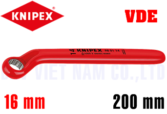 - Cờ lê cách điện Knipex 98 01 16, Knipex VDE Spanner 98 01 16 là loại cờ lê một đầu đầu tròng dùng để siết bulong, đai ốc size: 16 mm, chuyên dùng để siết trong môi trường điện cao thế ( <1.000 V).