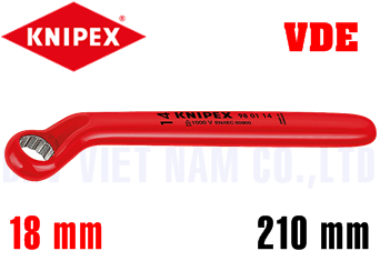 - Cờ lê cách điện Knipex 98 01 18, Knipex VDE Spanner 98 01 18 là loại cờ lê một đầu đầu tròng dùng để siết bulong, đai ốc size: 18 mm, chuyên dùng để siết trong môi trường điện cao thế ( <1.000 V).