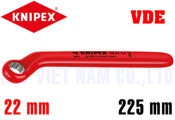 - Cờ lê cách điện Knipex 98 01 22, Knipex VDE Spanner 98 01 22 là loại cờ lê một đầu đầu tròng dùng để siết bulong, đai ốc size: 22 mm, chuyên dùng để siết trong môi trường điện cao thế ( <1.000 V).