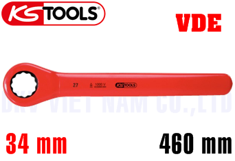 - Cờ lê cách điện KS Tools 117.4230, KS Tools VDE Spanner 117.4230 là loại cờ lê một đầu tròng 12 cạnh dùng để siết bulong, đai ốc size: 34 mm, chuyên dùng để siết trong môi trường điện cao thế ( <1.000 V).