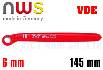 - Cờ lê cách điện NWS 2021-6-145, NWS VDE Spanner 2021-6-145 là loại cờ lê một đầu tròng dùng để siết bulong, đai ốc size: 6 mm, chuyên dùng để siết trong môi trường điện cao áp ( <1.000 V).