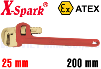 - Mỏ lết răng ống chống cháy nổ X- Spark 130A-1002, X-Spark non sparking adjustable pipe spanner 130A-1002 có độ mở max: 25 mm, chiều dài tổng thể 200 mm, chuyên dùng để siết bulong, đai ốc trong môi trường yêu cầu tính phòng chống cháy nổ.