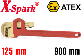 - Mỏ lết răng ống chống cháy nổ X- Spark 130A-1014, X-Spark non sparking adjustable pipe spanner 130A-1014 có độ mở max: 125 mm, chiều dài tổng thể 900 mm, chuyên dùng để siết bulong, đai ốc trong môi trường yêu cầu tính phòng chống cháy nổ.