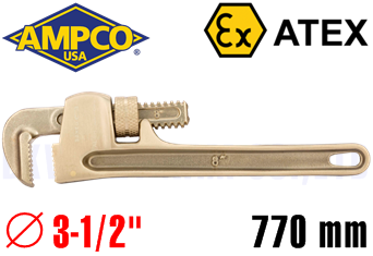- Mỏ lết răng ống chống cháy nổ Ampco ET0770B, Ampco non sparking adjustable pipe spanner ET0770B: có độ mở max: 90 mm (3-1/2″), chiều dài tổng thể 770 mm, chuyên dùng để siết bulong, đai ốc trong môi trường yêu cầu tính phòng chống cháy nổ.